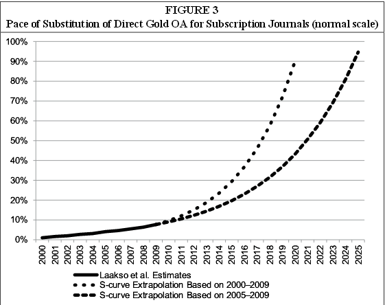 So how can we change the scholarly communications systems for good? In Graham’s view, reforming the current system “will require action at multiple levels: government and funder initiatives; institutional open access mandates; and, perhaps most importantly, strong commitments to openness from individual researchers.” He strongly suggests reading “The Inevitability of Open Access” by David Lewis et al and in particular, Figure 3, included below.
